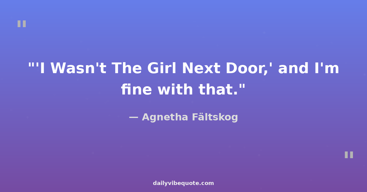 "'I Wasn't The Girl Next Door,' and I'm fine with that."