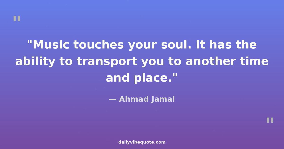 "Music touches your soul. It has the ability to transport you to another time and place."