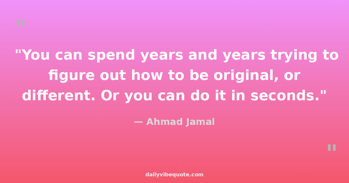 "You can spend years and years trying to figure out how to be original, or different. Or you can do it in seconds."