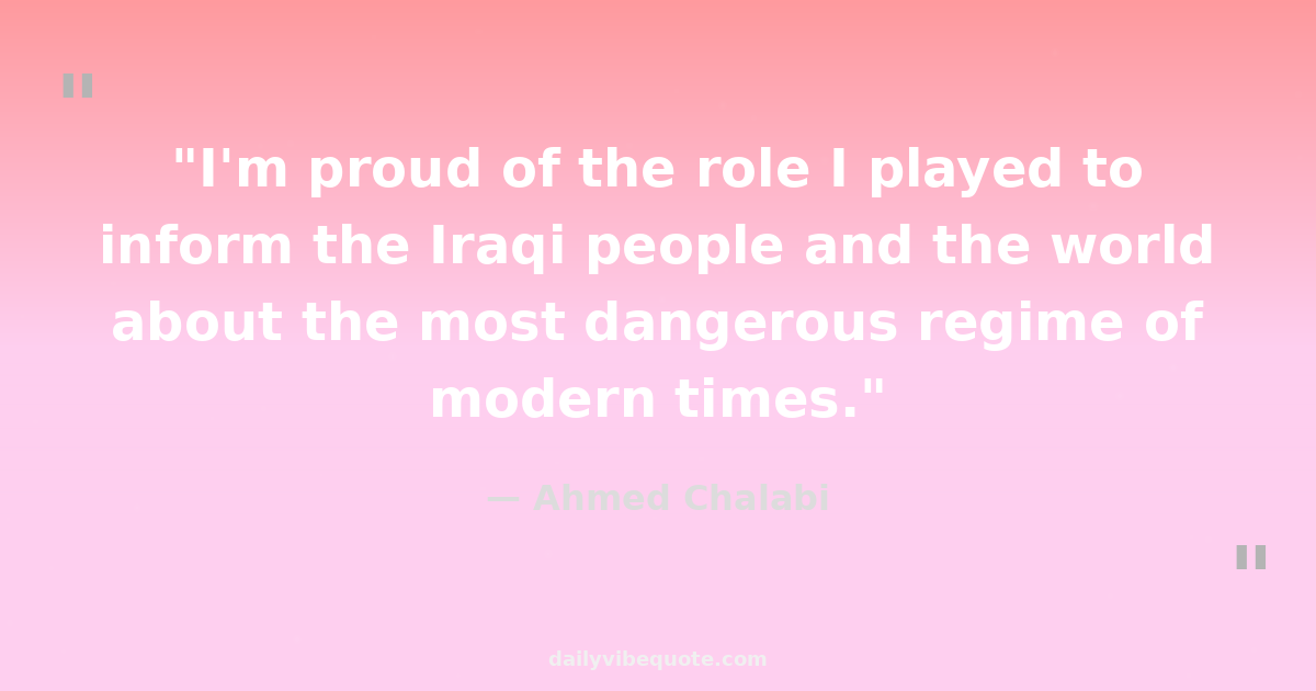 "I'm proud of the role I played to inform the Iraqi people and the world about the most dangerous regime of modern times."