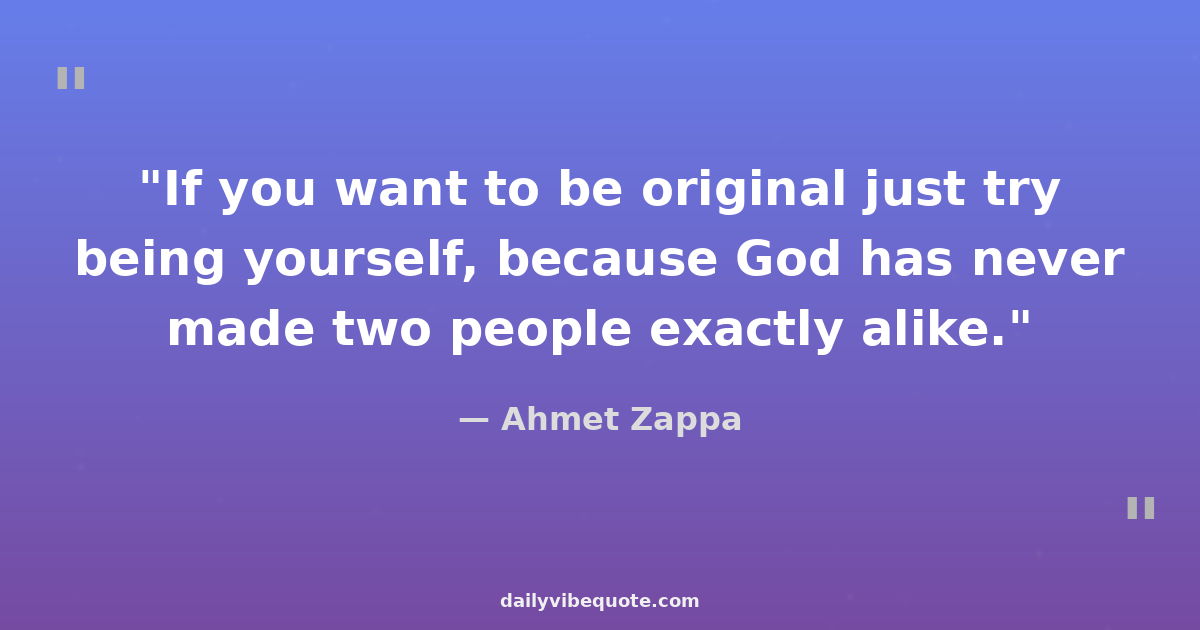 "If you want to be original just try being yourself, because God has never made two people exactly alike."
