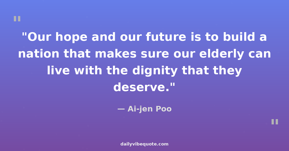 "Our hope and our future is to build a nation that makes sure our elderly can live with the dignity that they deserve."