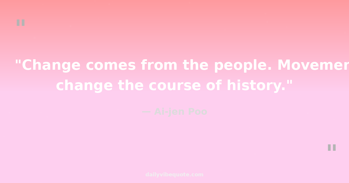 Ai-jen Poo is an American labor organizer and social justice advocate. She is the co-founder and executive director of the National Domestic Workers Alliance, an organization that works to improve the working conditions and rights of domestic workers in the United States. Poo has been a leading voice in the fight for domestic workers' rights, advocating for fair wages, labor protections, and dignity for this often marginalized workforce. She has received numerous awards for her work, including a MacArthur 'Genius Grant' in 2014.
