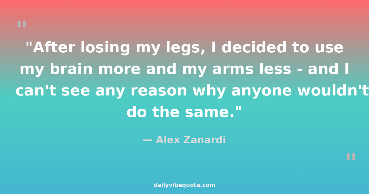 "After losing my legs, I decided to use my brain more and my arms less - and I can't see any reason why anyone wouldn't do the same."