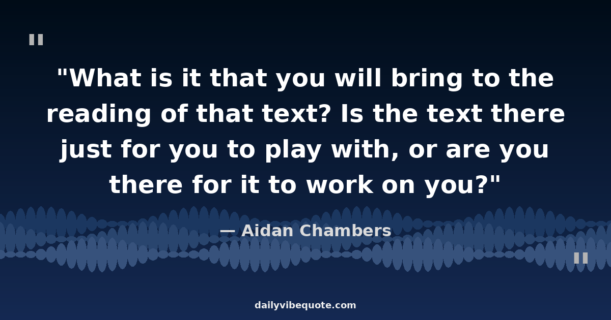 "What is it that you will bring to the reading of that text? Is the text there just for you to play with, or are you there for it to work on you?"