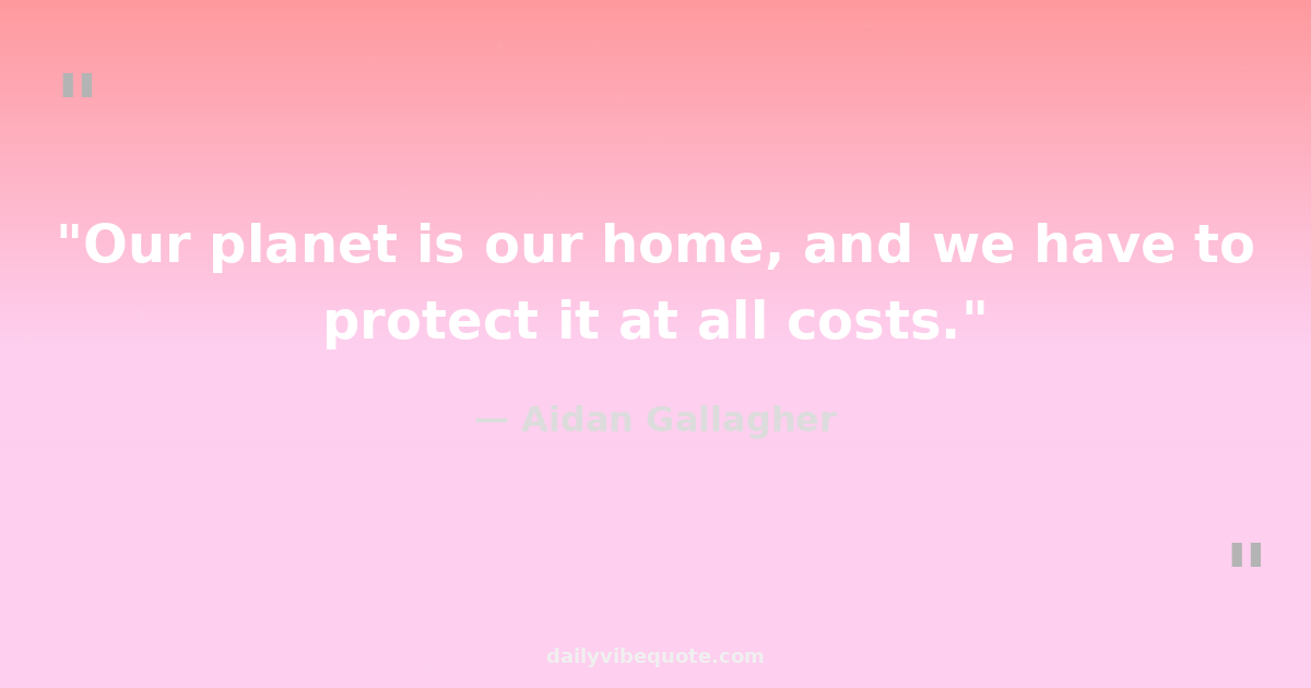 "Our planet is our home, and we have to protect it at all costs."
