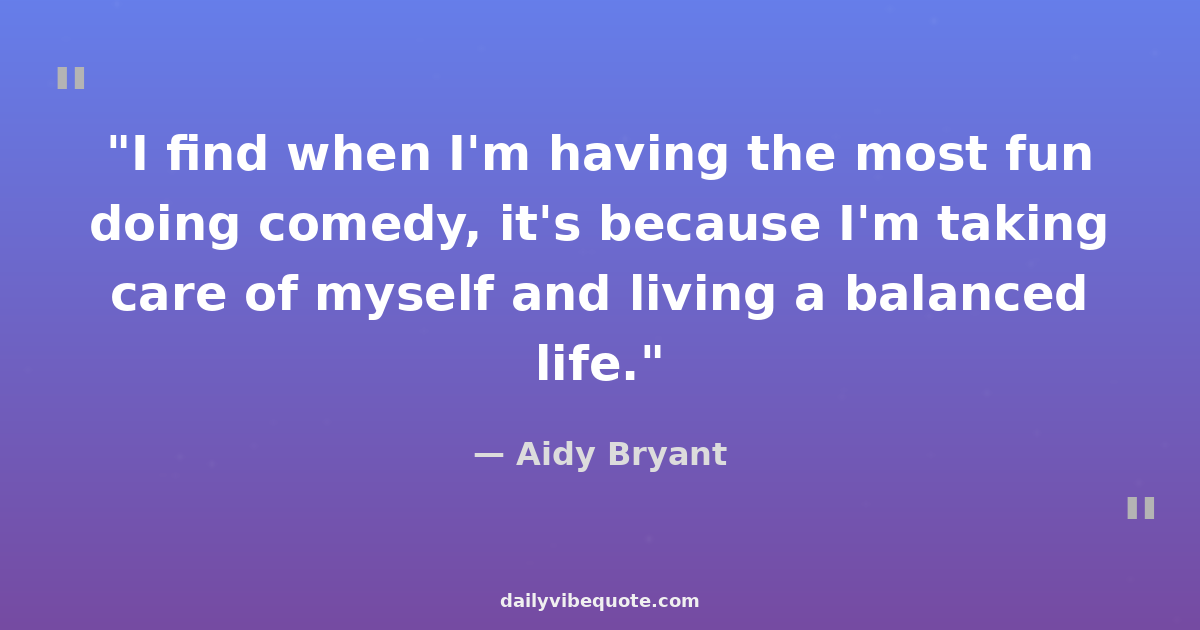 "I find when I'm having the most fun doing comedy, it's because I'm taking care of myself and living a balanced life."