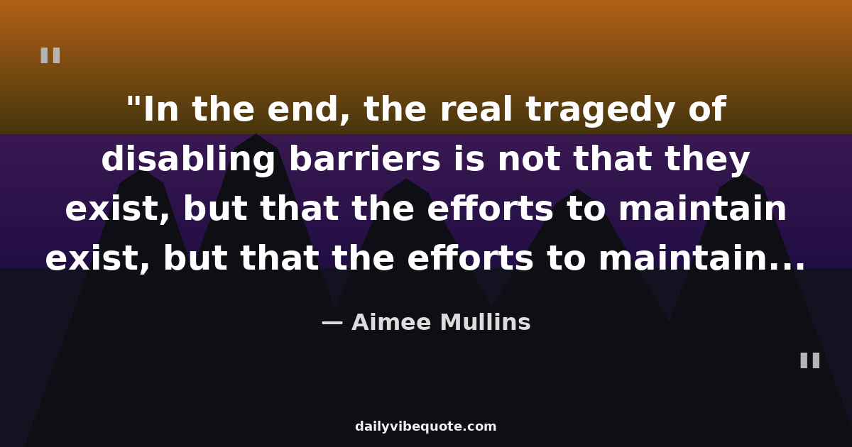 "In the end, the real tragedy of disabling barriers is not that they exist, but that the efforts to maintain them and keep them constraining is so fierce and unquestioned."