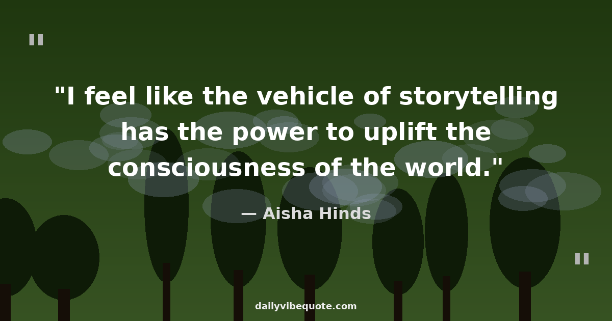 "I feel like the vehicle of storytelling has the power to uplift the consciousness of the world."