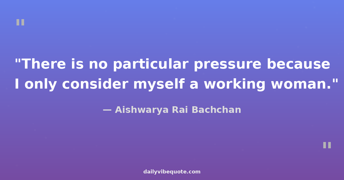 "There is no particular pressure because I only consider myself a working woman."