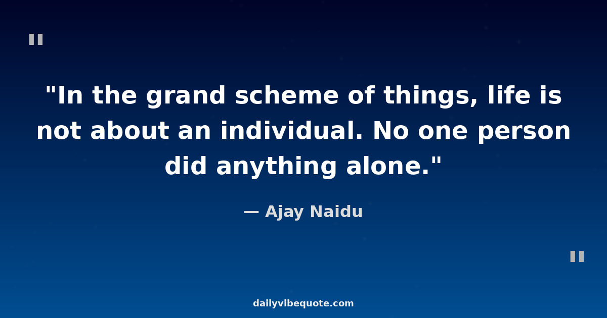 "In the grand scheme of things, life is not about an individual. No one person did anything alone."