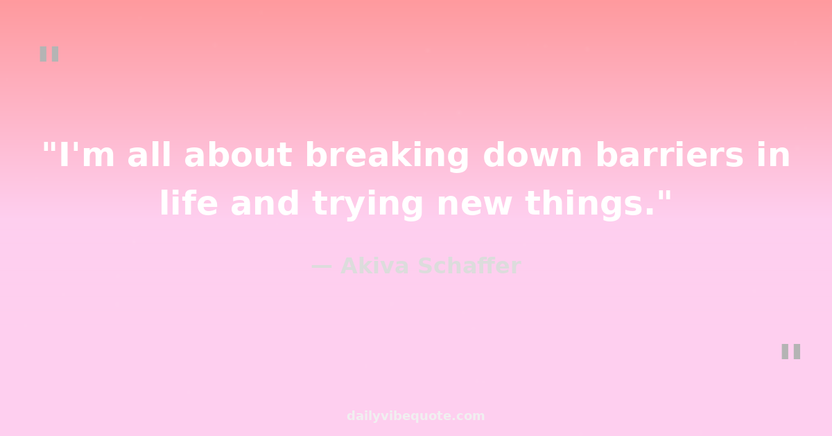 "I'm all about breaking down barriers in life and trying new things."