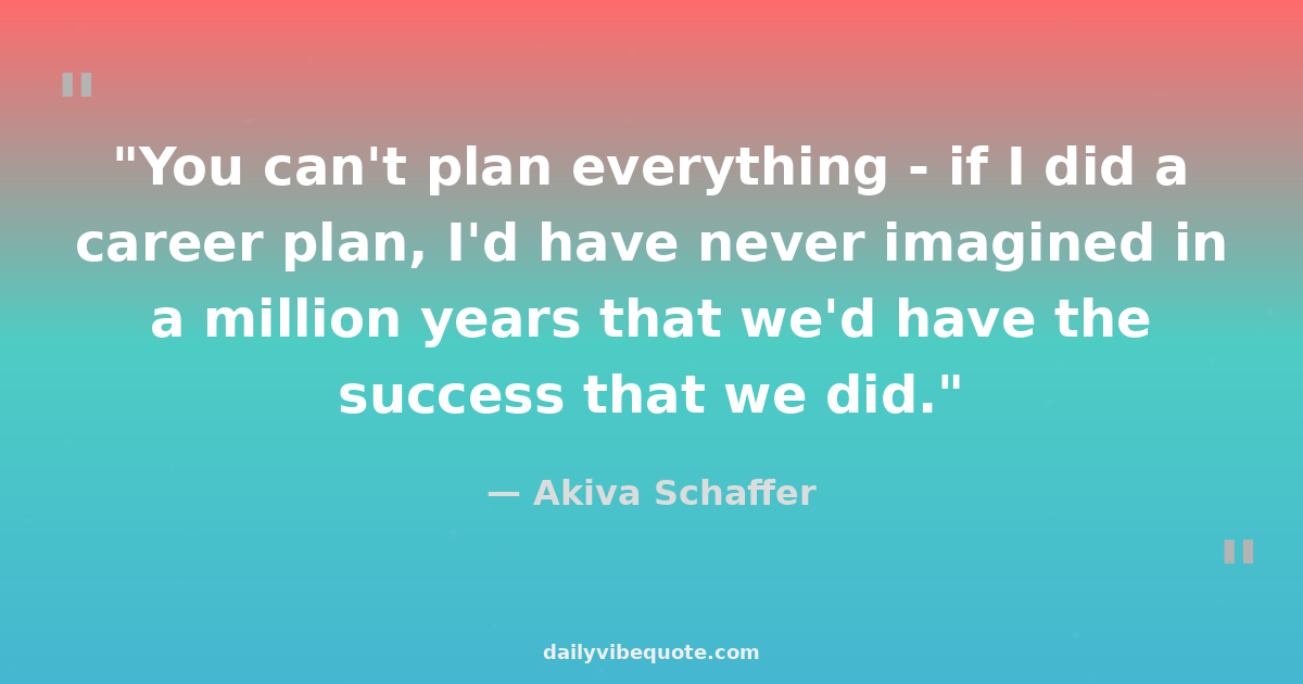 "You can't plan everything - if I did a career plan, I'd have never imagined in a million years that we'd have the success that we did."