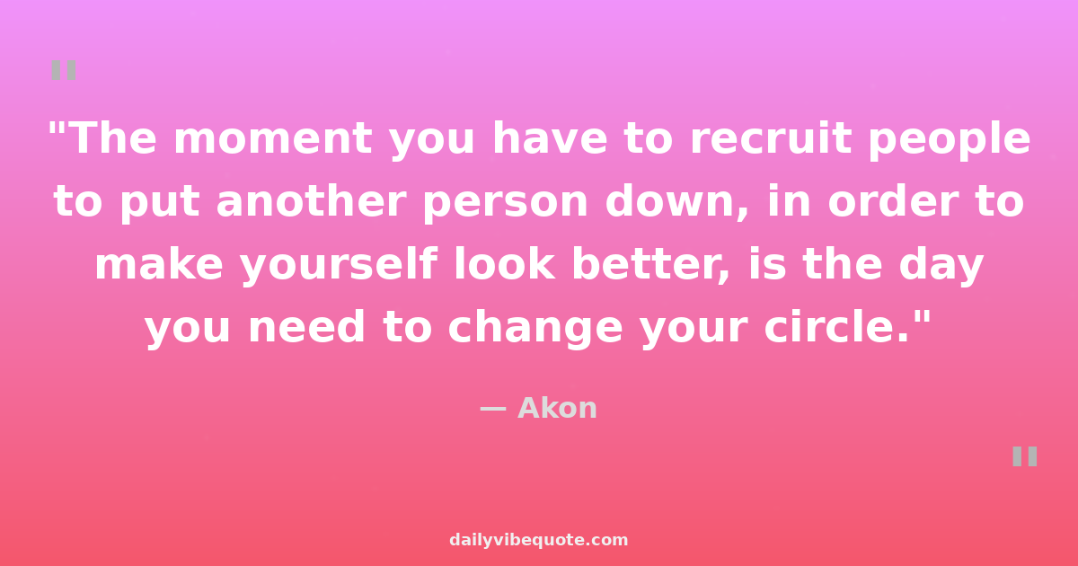 "The moment you have to recruit people to put another person down, in order to make yourself look better, is the day you need to change your circle."