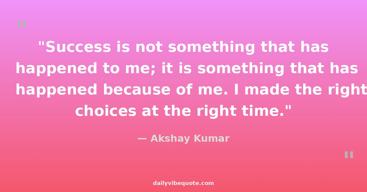 "Success is not something that has happened to me; it is something that has happened because of me. I made the right choices at the right time."