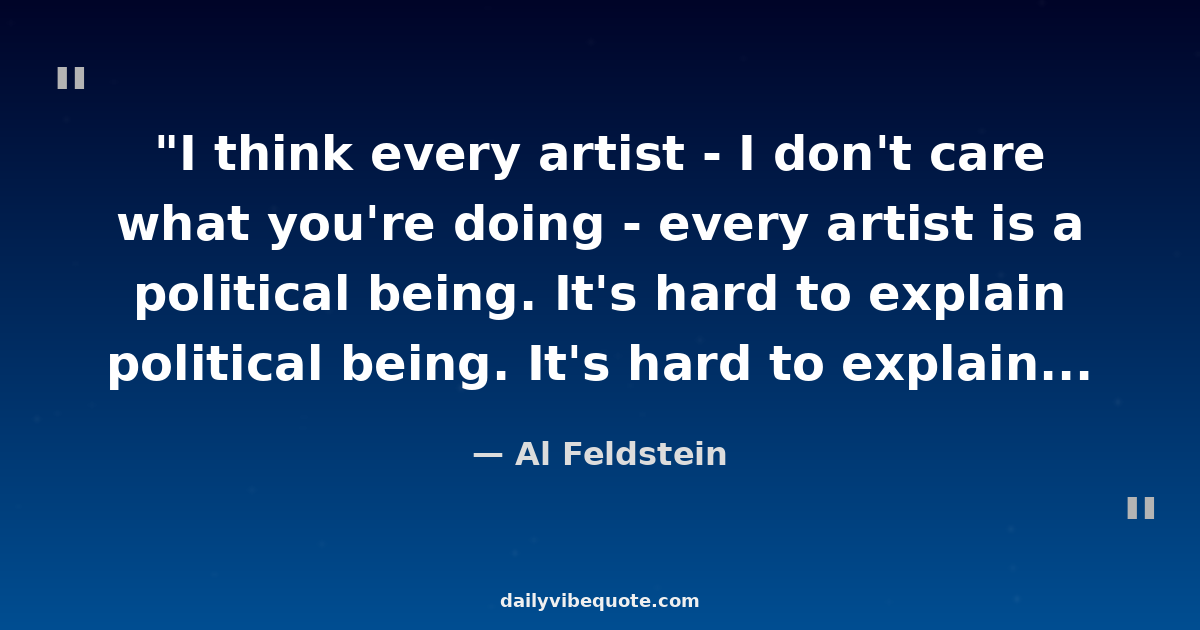 "I think every artist - I don't care what you're doing - every artist is a political being. It's hard to explain that in one sentence. We need to be involved. We need to stop what's going on."