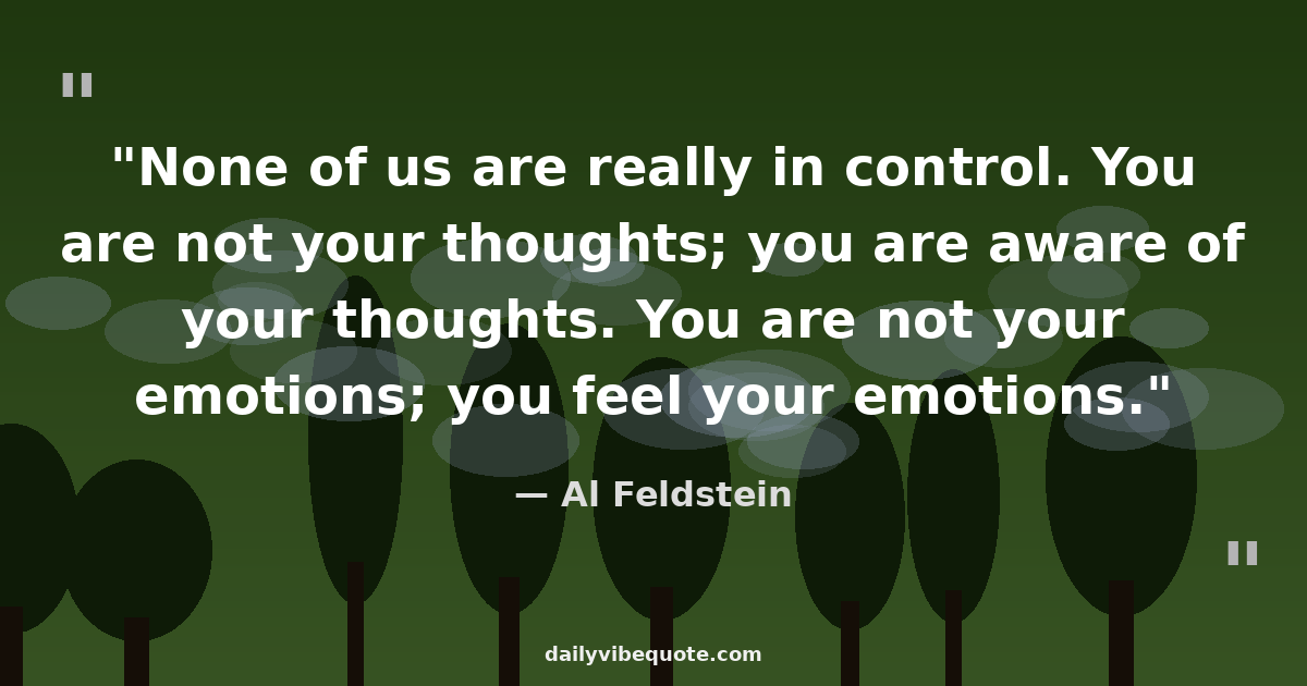 "None of us are really in control. You are not your thoughts; you are aware of your thoughts. You are not your emotions; you feel your emotions."