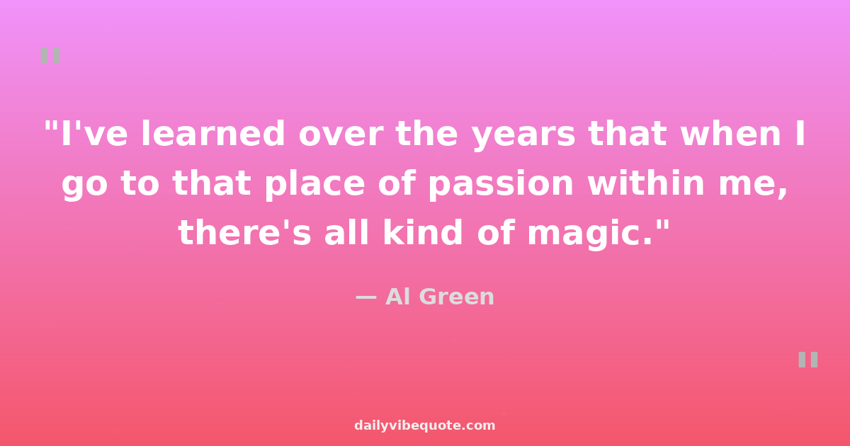 "I've learned over the years that when I go to that place of passion within me, there's all kind of magic."