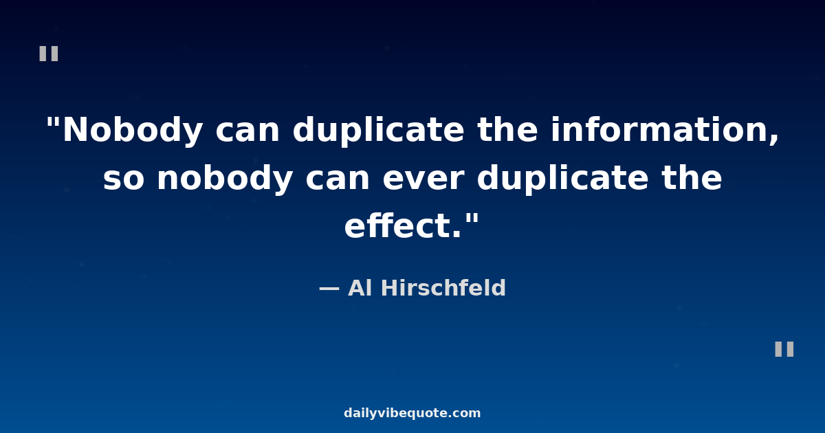 "Nobody can duplicate the information, so nobody can ever duplicate the effect."