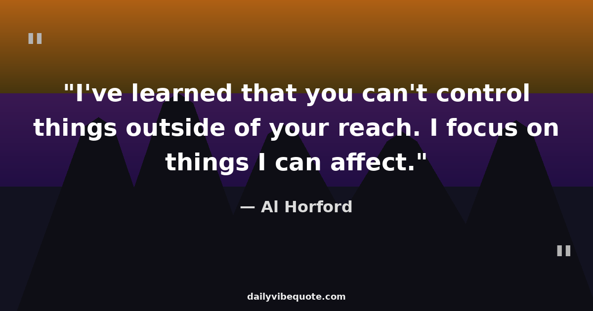 "I've learned that you can't control things outside of your reach. I focus on things I can affect."