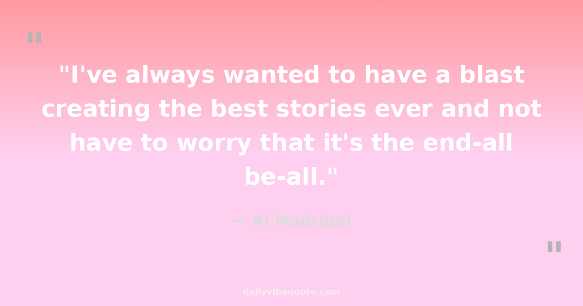 "I've always wanted to have a blast creating the best stories ever and not have to worry that it's the end-all be-all."