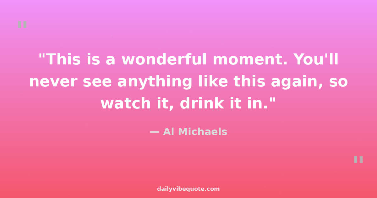 "This is a wonderful moment. You'll never see anything like this again, so watch it, drink it in."