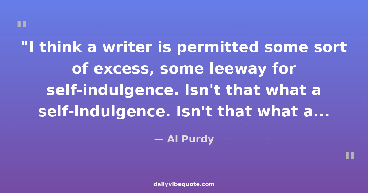 "I think a writer is permitted some sort of excess, some leeway for self-indulgence. Isn't that what a writer should be doing – chasing whimsies?"