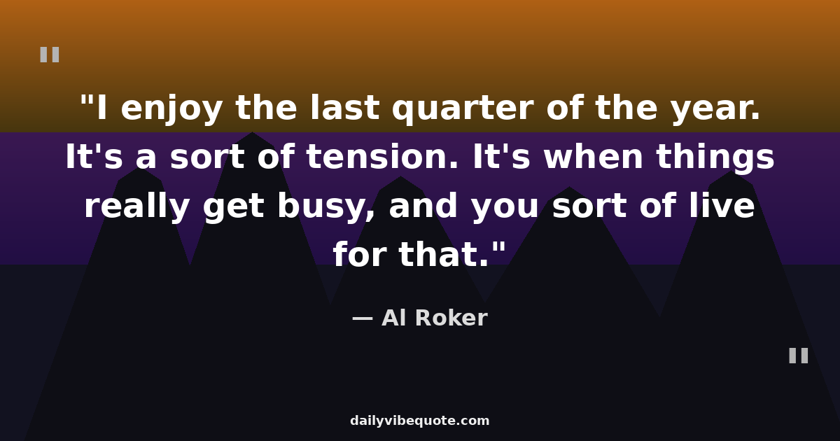 "I enjoy the last quarter of the year. It's a sort of tension. It's when things really get busy, and you sort of live for that."