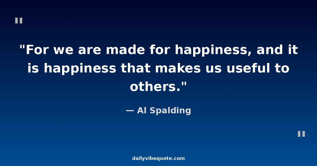 "For we are made for happiness, and it is happiness that makes us useful to others."