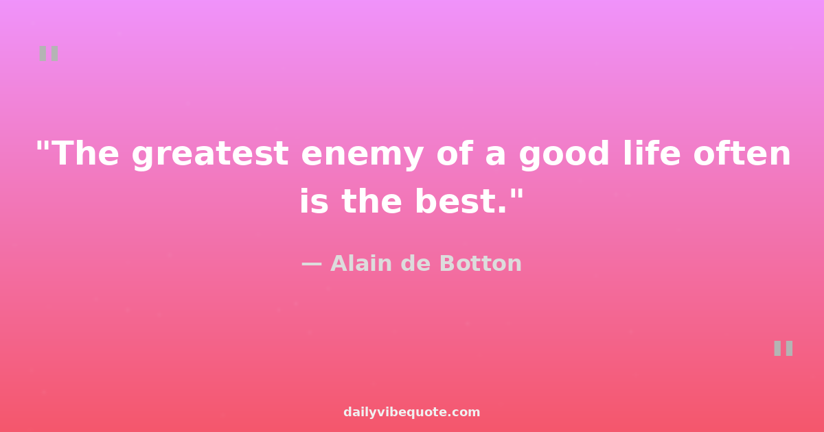 "The greatest enemy of a good life often is the best."