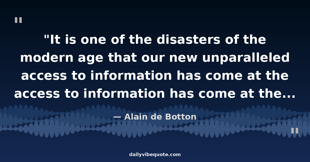 "It is one of the disasters of the modern age that our new unparalleled access to information has come at the price of our capacity to concentrate on anything much. The deep, immersive thinking which produced many of civilization’s most important achievements has come under unprecedented assault. We are almost never far from a machine that guarantees us a further supply of distractions."