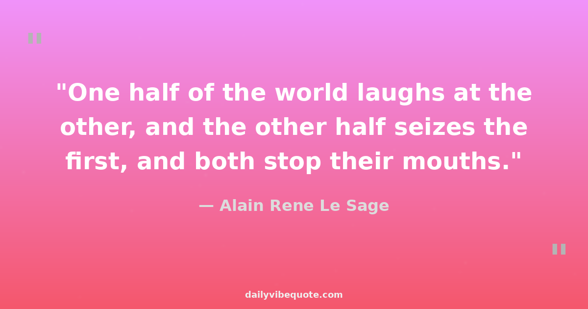 "One half of the world laughs at the other, and the other half seizes the first, and both stop their mouths."