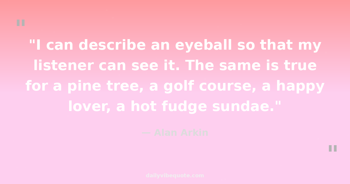 "I can describe an eyeball so that my listener can see it. The same is true for a pine tree, a golf course, a happy lover, a hot fudge sundae."
