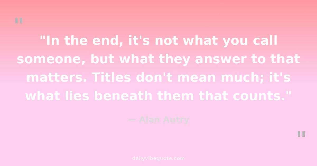 "In the end, it's not what you call someone, but what they answer to that matters. Titles don't mean much; it's what lies beneath them that counts."