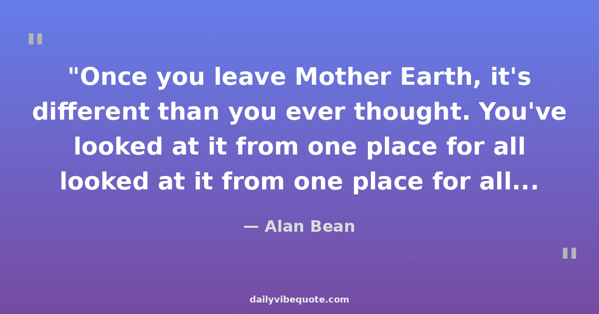 "Once you leave Mother Earth, it's different than you ever thought. You've looked at it from one place for all those years, and to see it faintly in the background of your mind is different from being there."