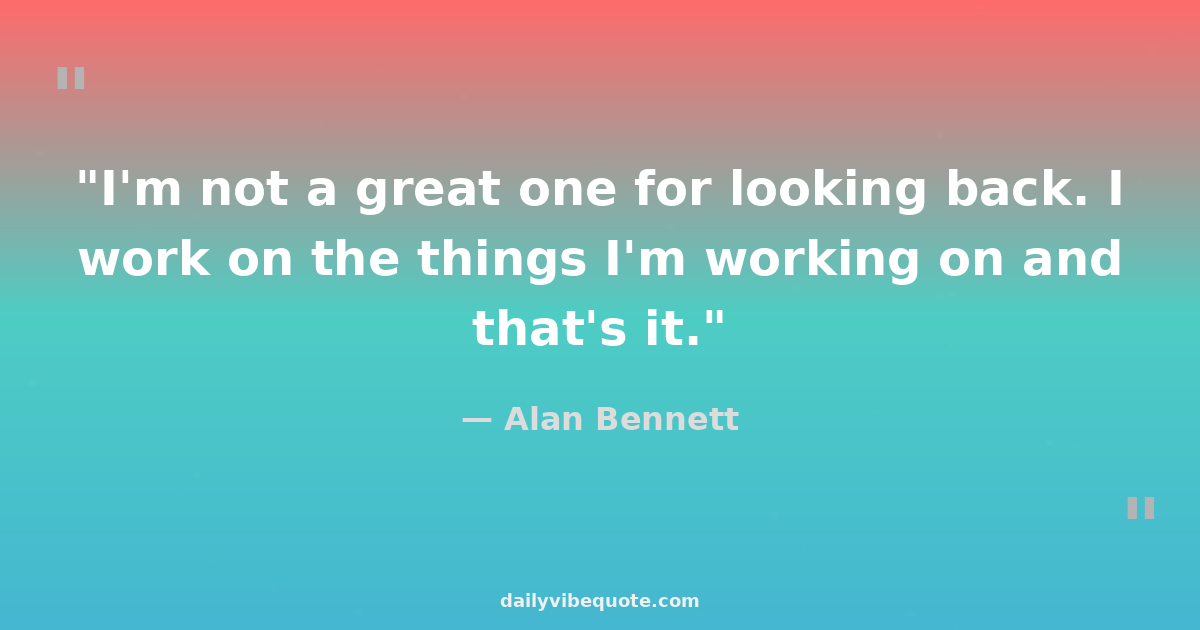 "I'm not a great one for looking back. I work on the things I'm working on and that's it."