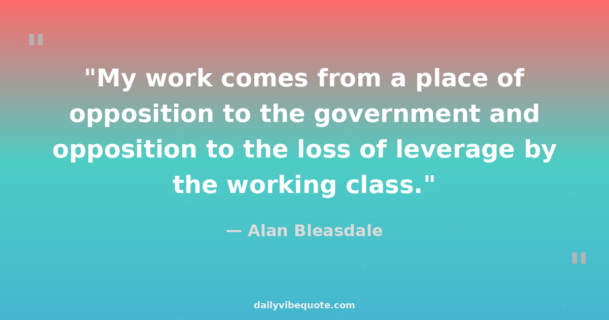 "My work comes from a place of opposition to the government and opposition to the loss of leverage by the working class."