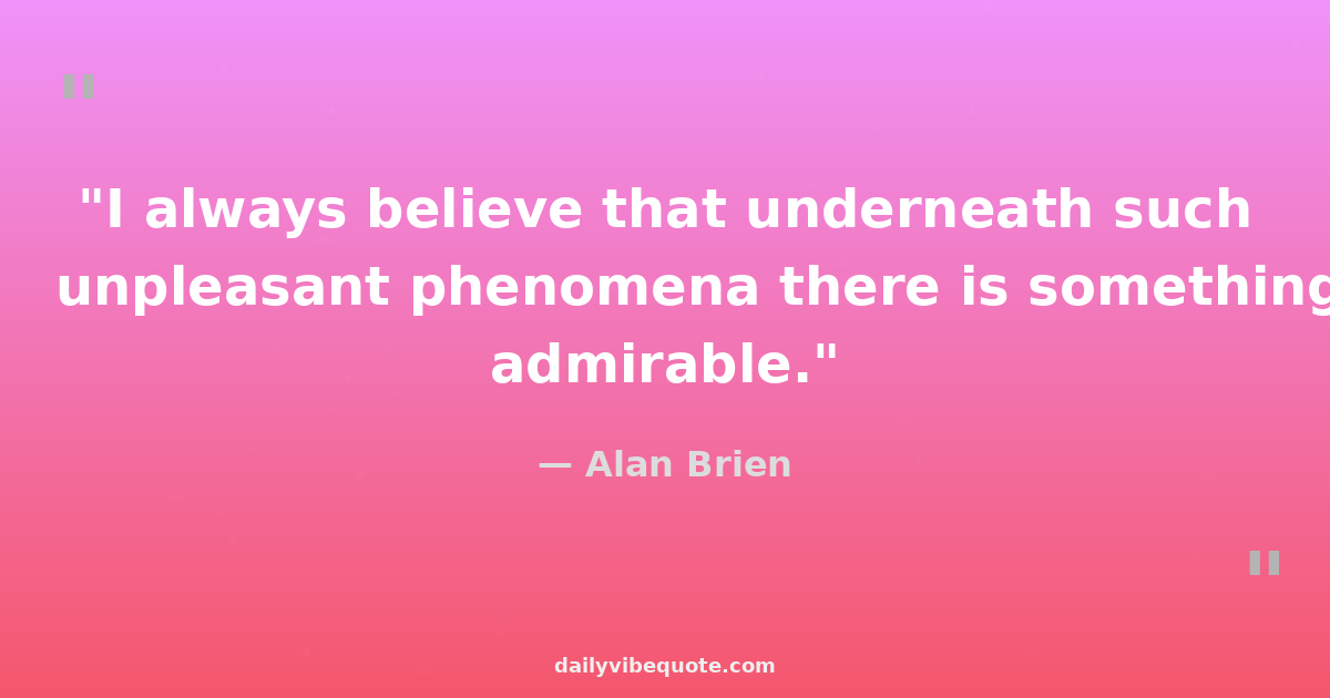 "I always believe that underneath such unpleasant phenomena there is something admirable."