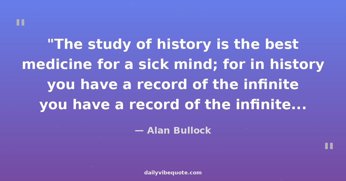"The study of history is the best medicine for a sick mind; for in history you have a record of the infinite variety of human experience plainly set out for all to see."