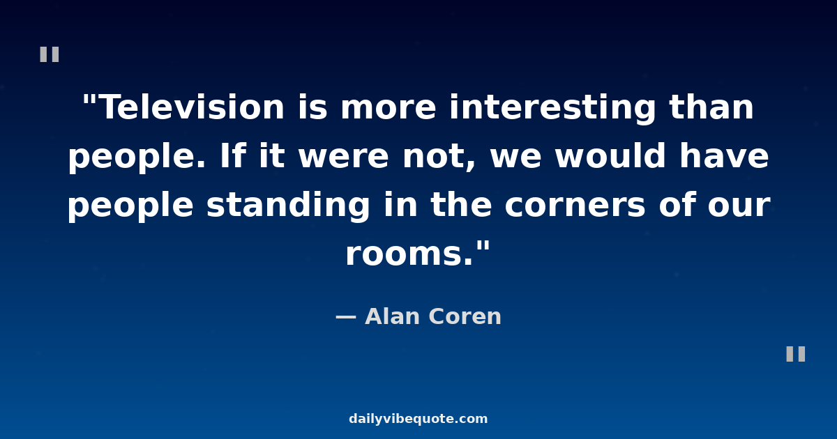 "Television is more interesting than people. If it were not, we would have people standing in the corners of our rooms."