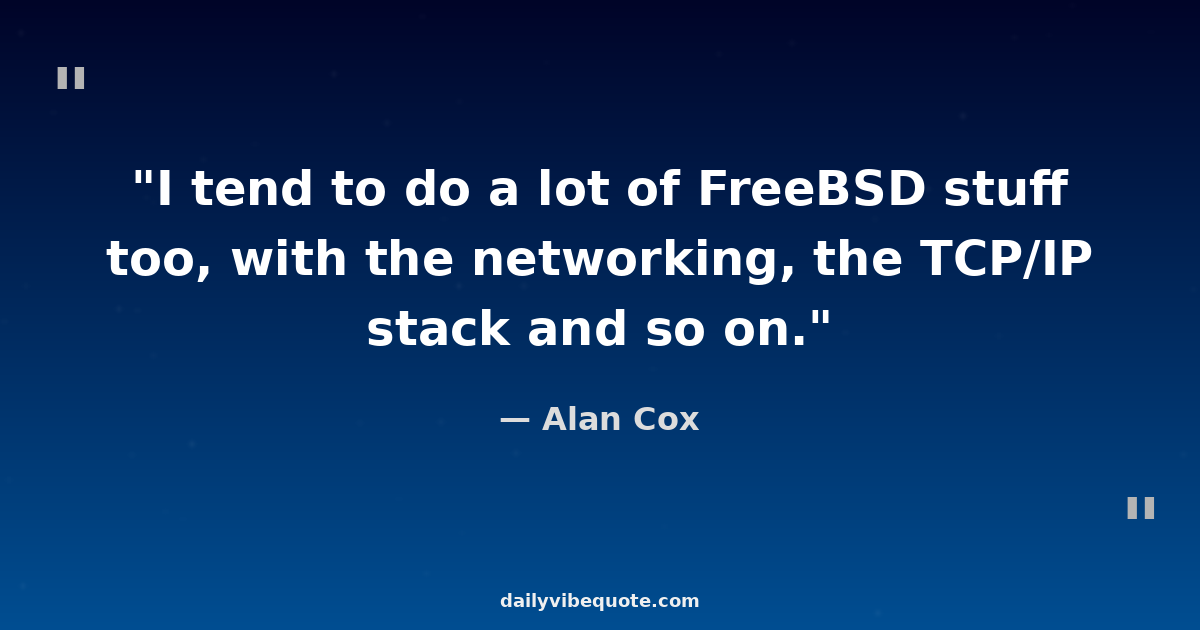 "I tend to do a lot of FreeBSD stuff too, with the networking, the TCP/IP stack and so on."