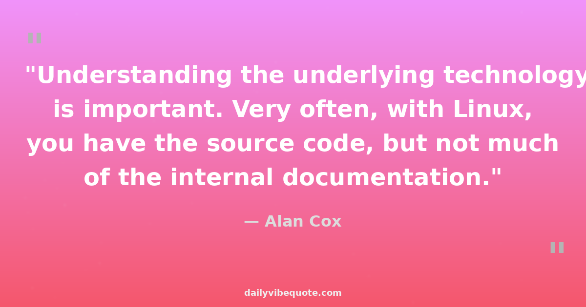 "Understanding the underlying technology is important. Very often, with Linux, you have the source code, but not much of the internal documentation."