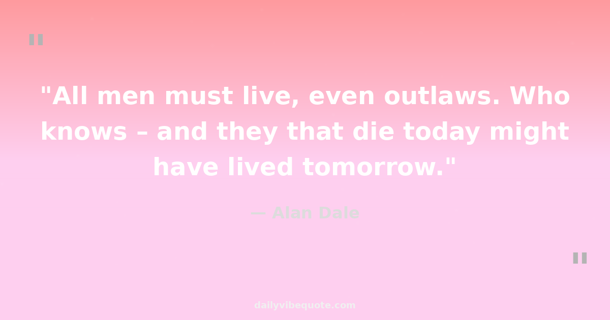 "All men must live, even outlaws. Who knows – and they that die today might have lived tomorrow."