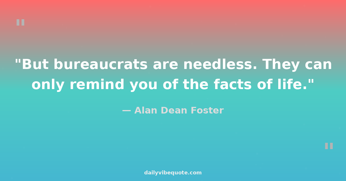 "But bureaucrats are needless. They can only remind you of the facts of life."