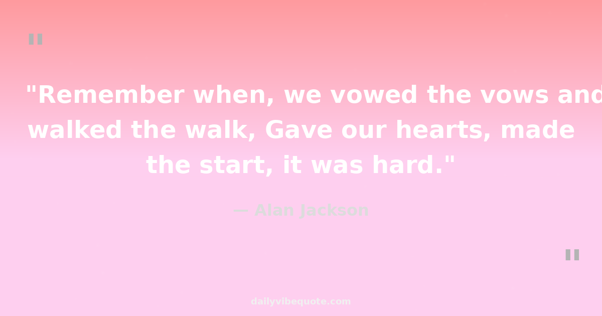 "Remember when, we vowed the vows and walked the walk, Gave our hearts, made the start, it was hard."