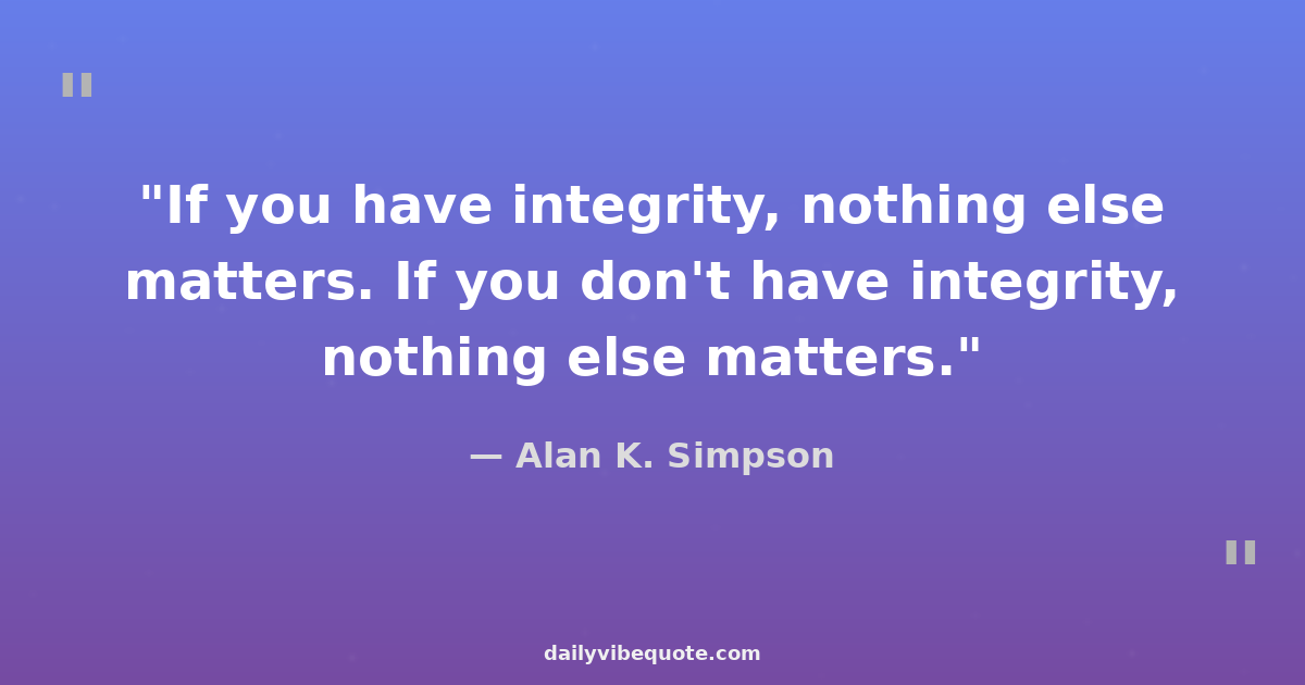 "If you have integrity, nothing else matters. If you don't have integrity, nothing else matters."