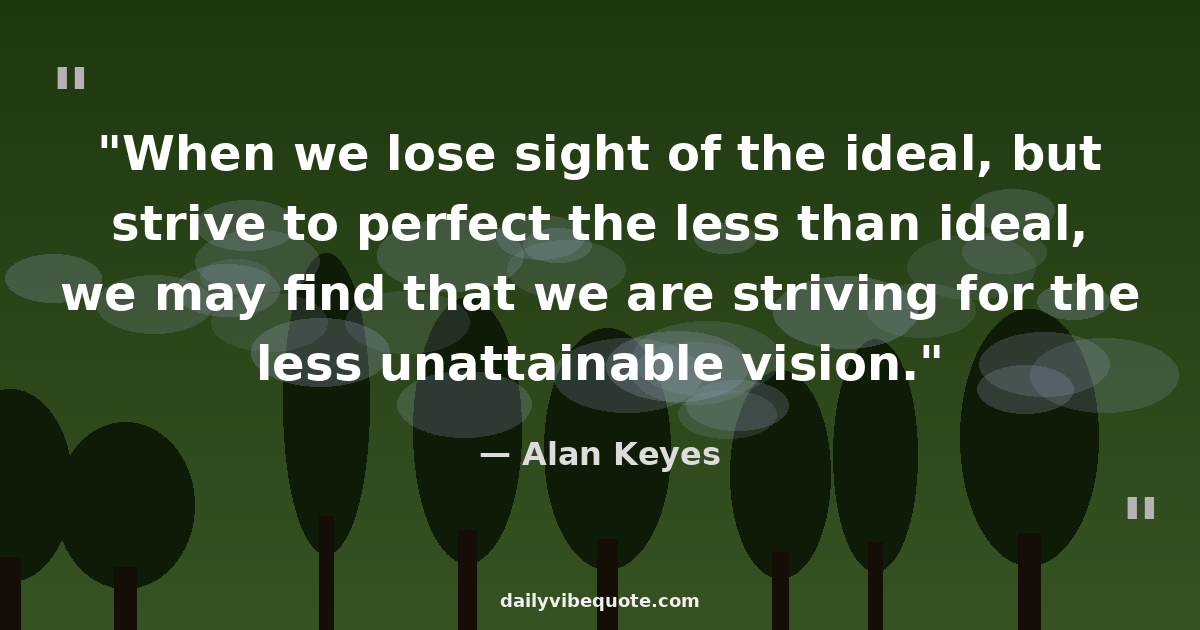 "When we lose sight of the ideal, but strive to perfect the less than ideal, we may find that we are striving for the less unattainable vision."