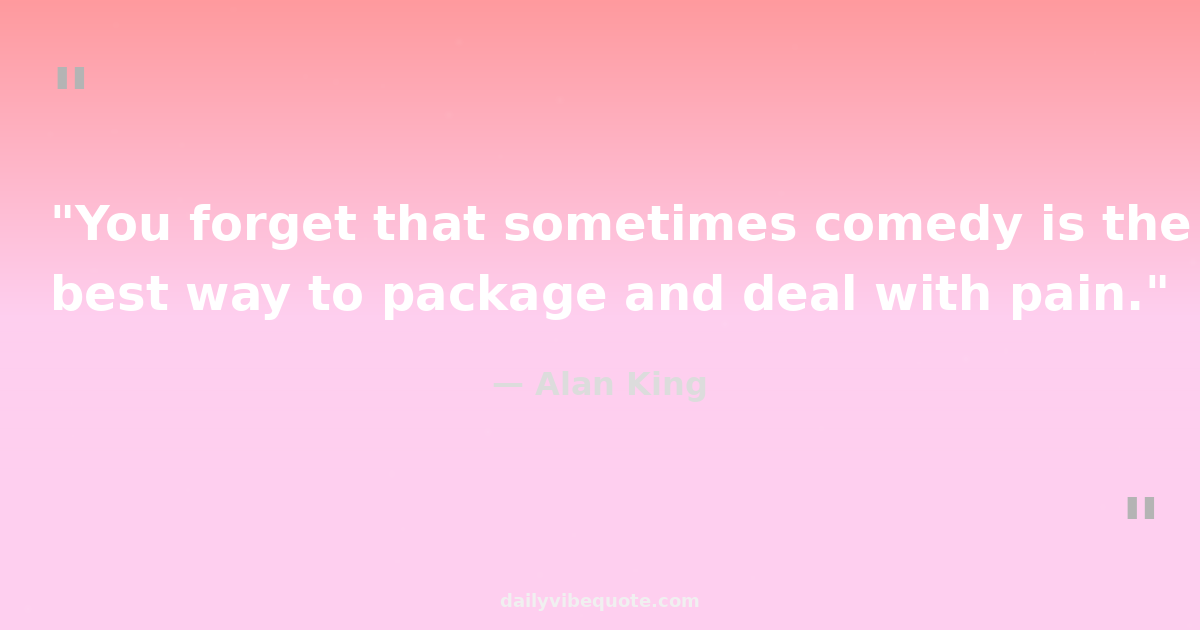 "You forget that sometimes comedy is the best way to package and deal with pain."