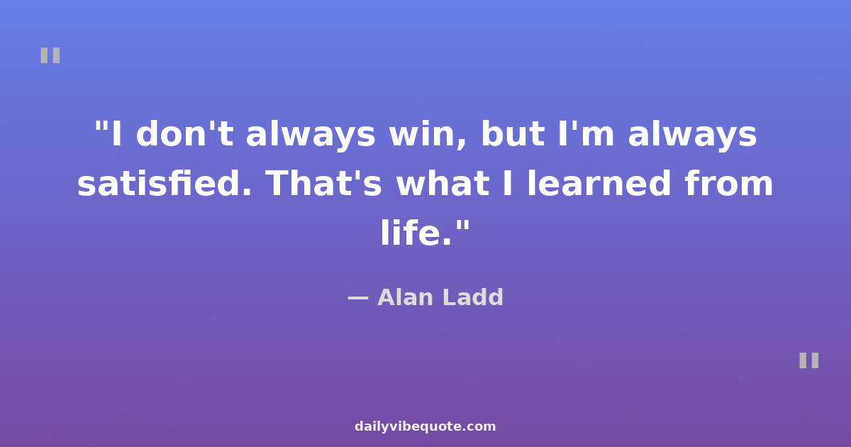 "I don't always win, but I'm always satisfied. That's what I learned from life."