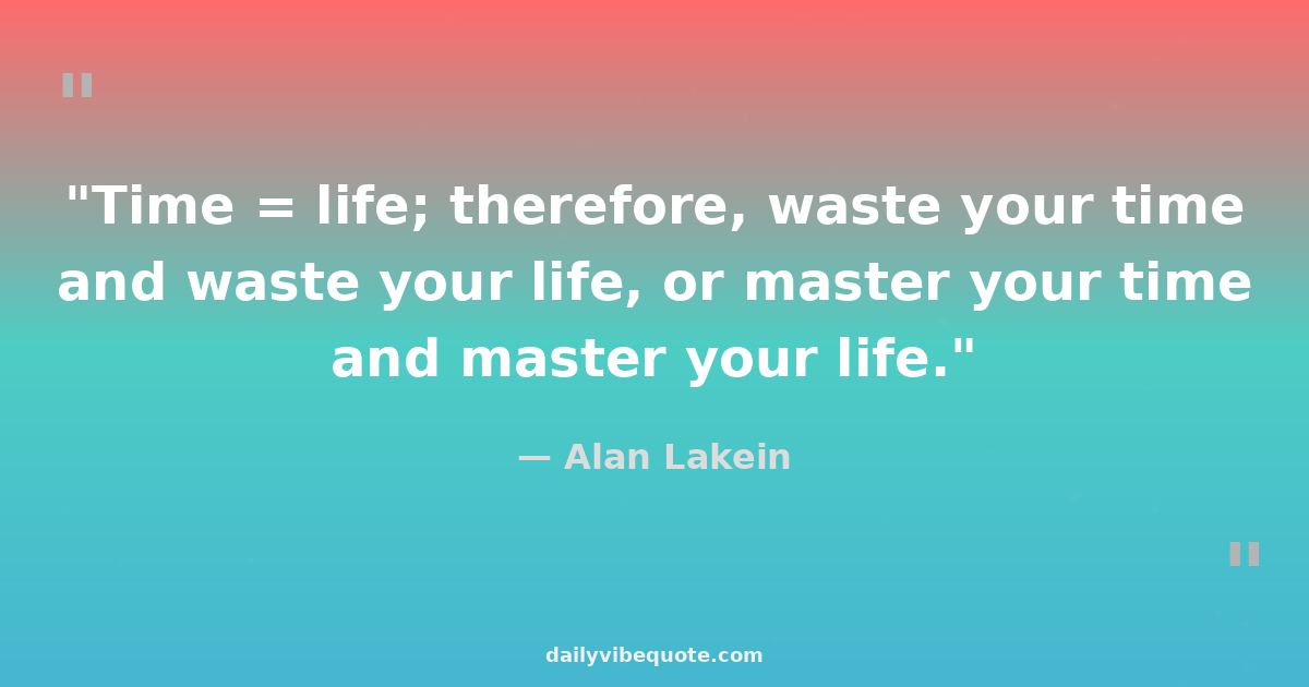 "Time = life; therefore, waste your time and waste your life, or master your time and master your life."